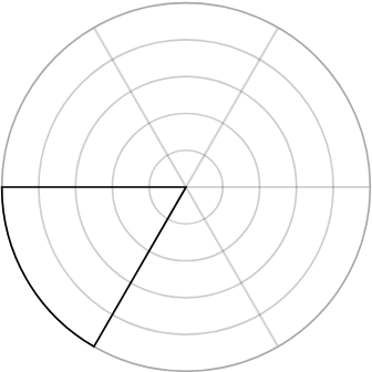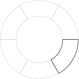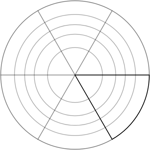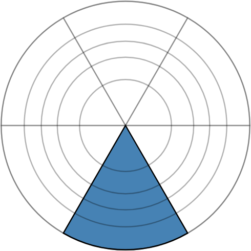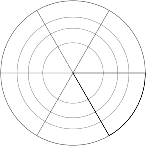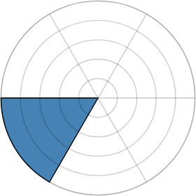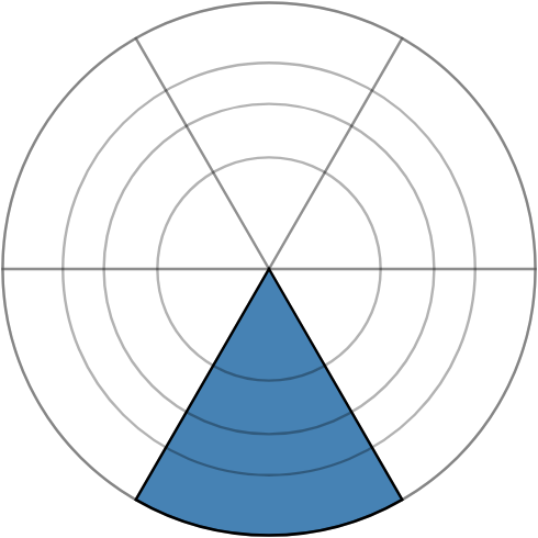 During the study, you will be asked to read values from rose charts with differently spaced grid lines. Your task is to estimate the percentage shown by the dark blue fill level from the segment with the black outline.